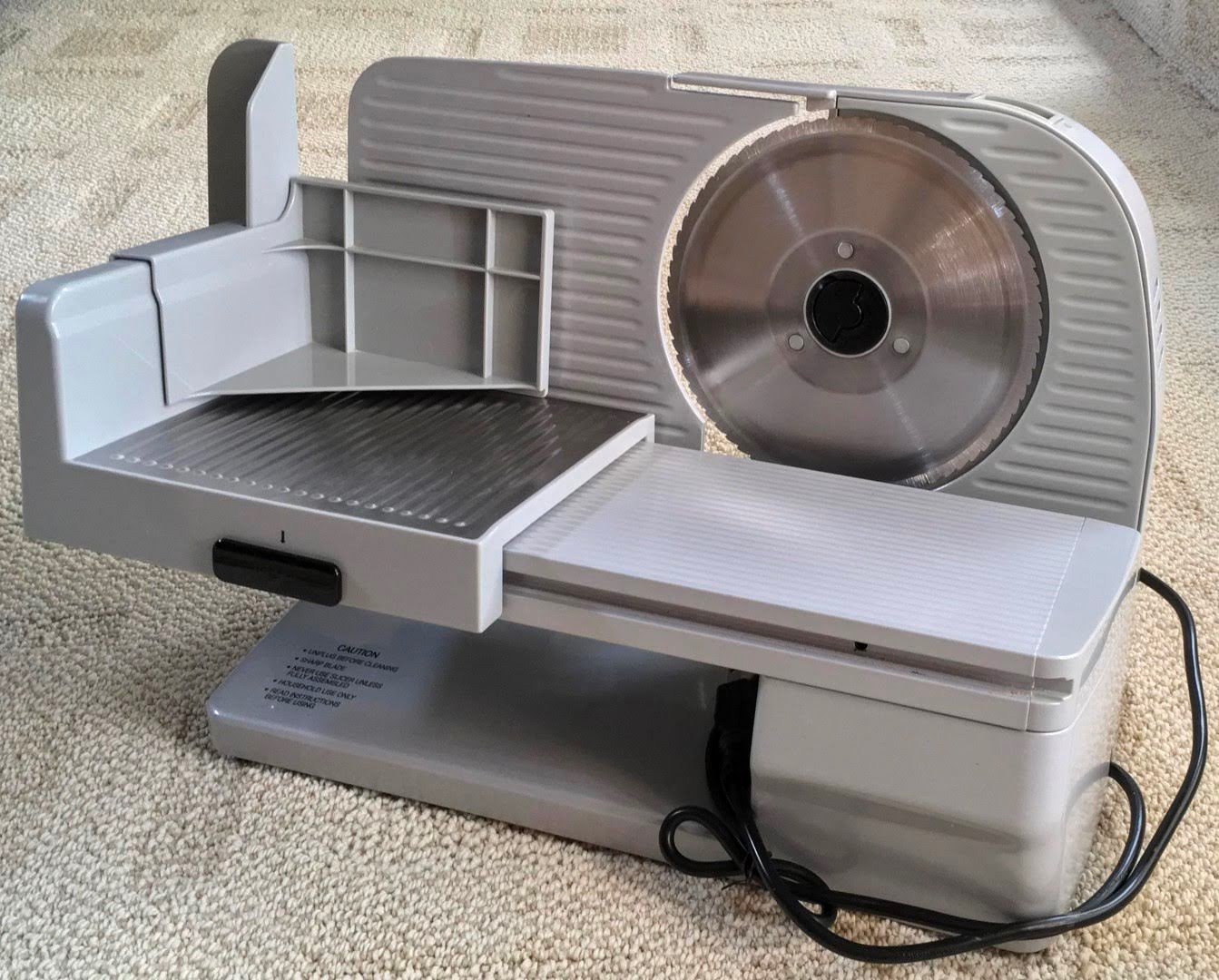 Fortunately, excellent electric food slicers are available at reasonable cost. For more than 20 years, we have used the Chef’sChoice premium electric slicer. It is still available, costing less than $150 (2018).